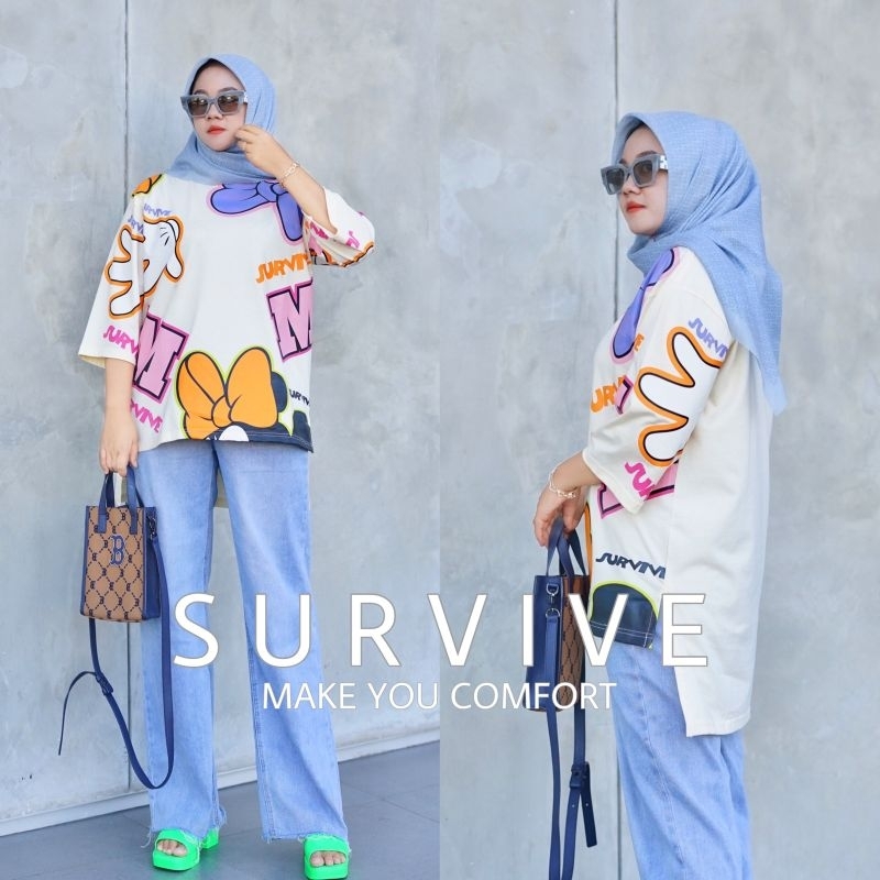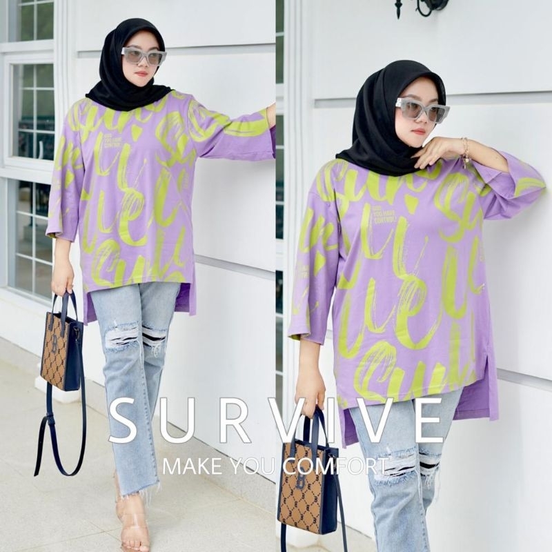 KAOS WANITA ORIGINAL LENGAN 7/8 / KAOS WANITA OVERSIZE / KAOS BIGSIZE WANITA LD 120 / KAOS SURVIVE