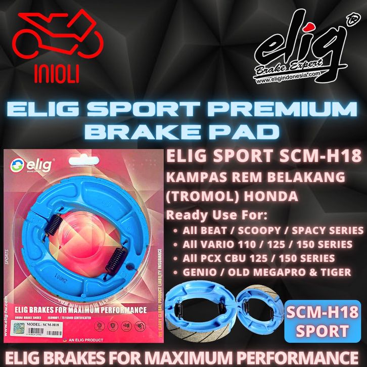 kampas rem KAMPAS REM BELAKANG TROMOL ELIG SPORT SCM H18 HONDA OLD BEAT CARBU BEAT FI NEW BEAT ESP BEAT STREET BEAT DEL