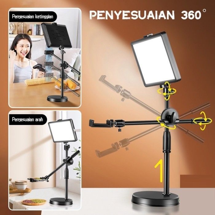 triP00D hp vlog konten SMARTCOM Overhead Phone Stand with Led Lampu Stand Holder Phone Holder Bracket 360° Lampu Foto