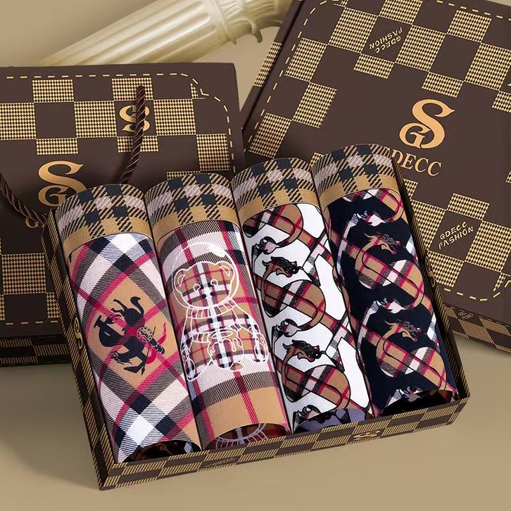 PROMO 1pcs&4pcs Boxer Pria Motif Mewah, Celana Dalam Laki Laki Bahan Katun