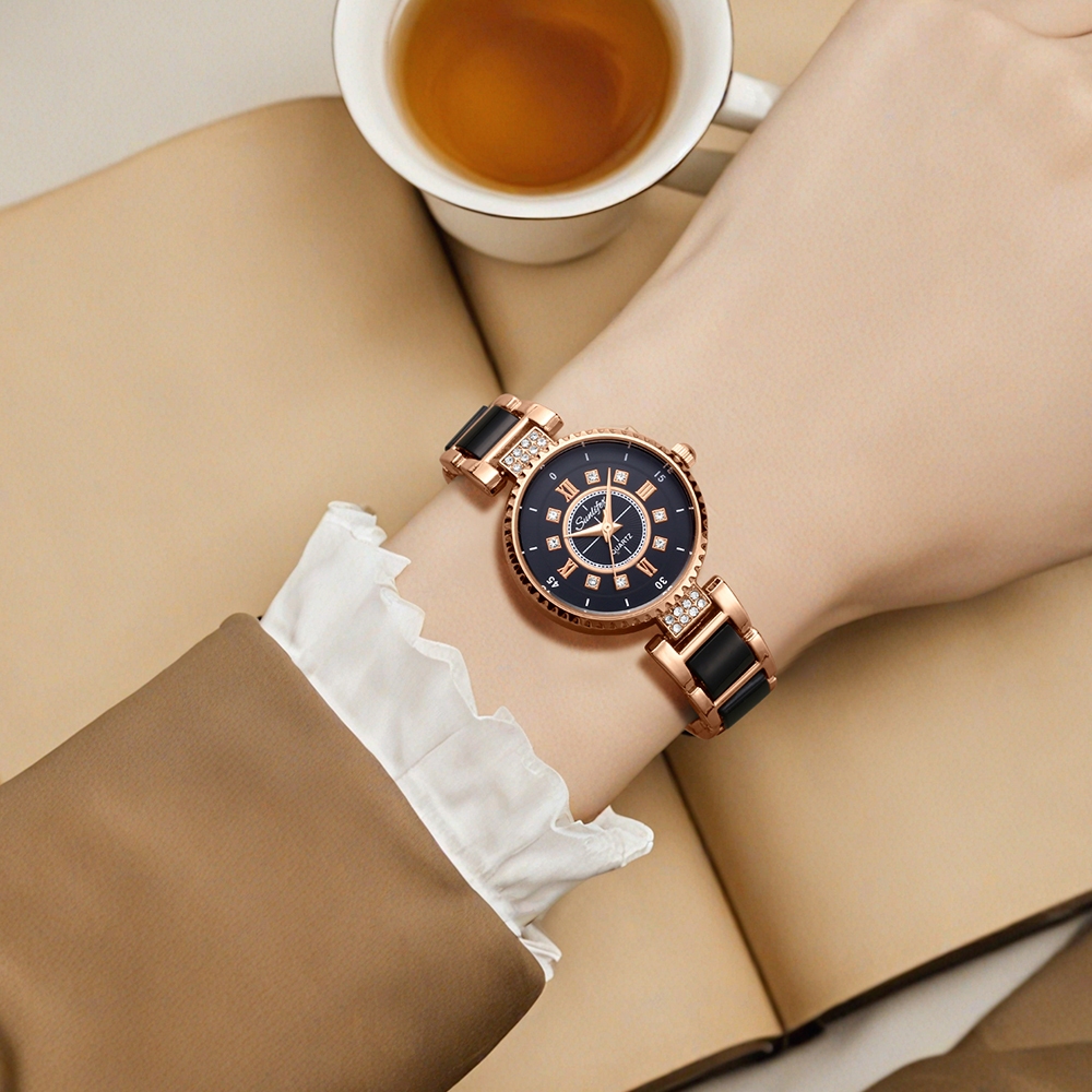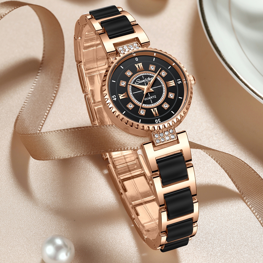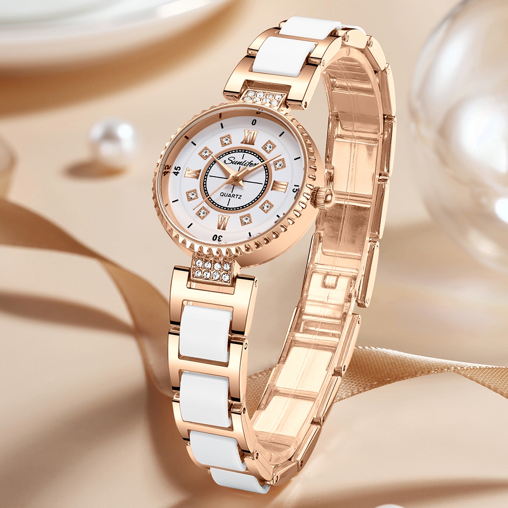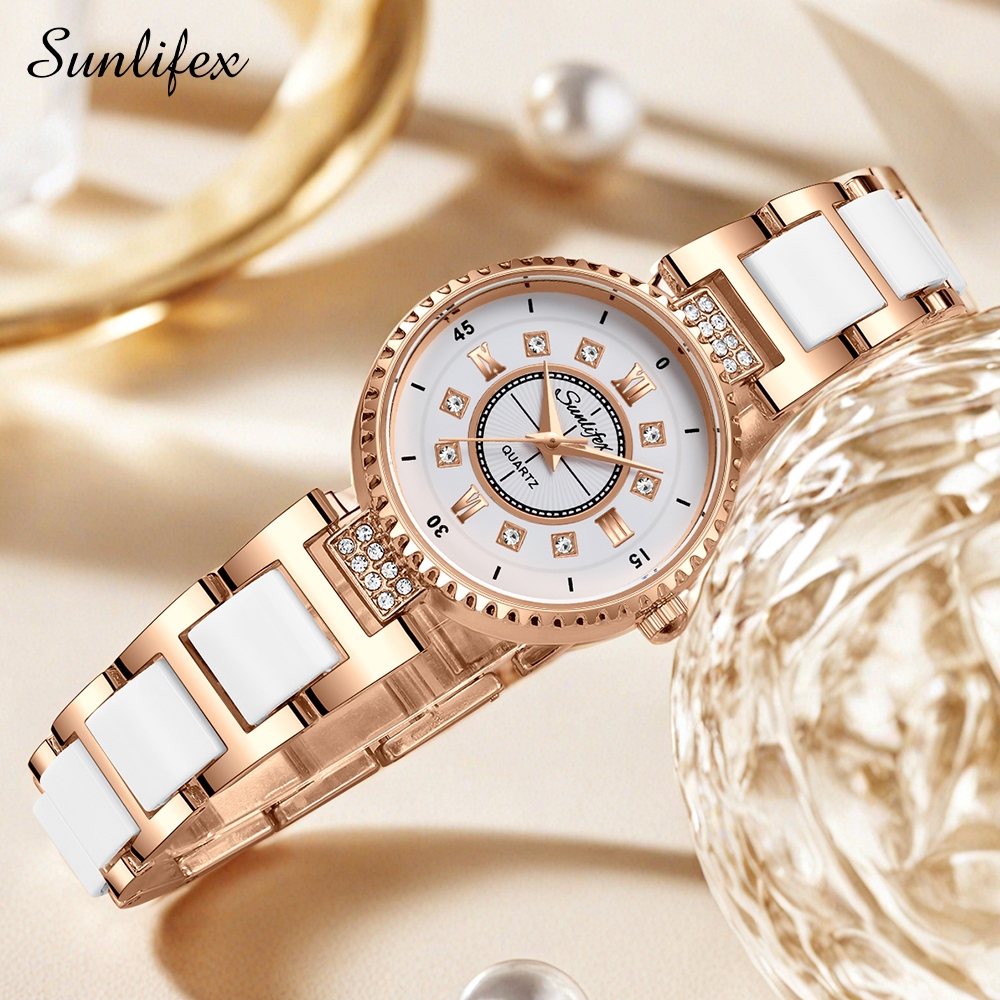 JAM TANGAN WANITA SUNLIFEX ORIGINAL 8013 ANALOG BERLIAN TALI KERAMIK