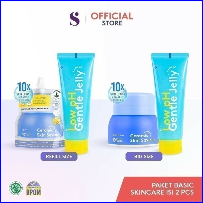 Bundle Hemat Somethinc Basic Skincare Kit - Low Ph Gentle Jelly Cleanser Ceramic Skin Saviour Moisturizer Gel