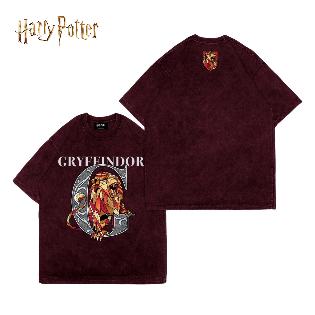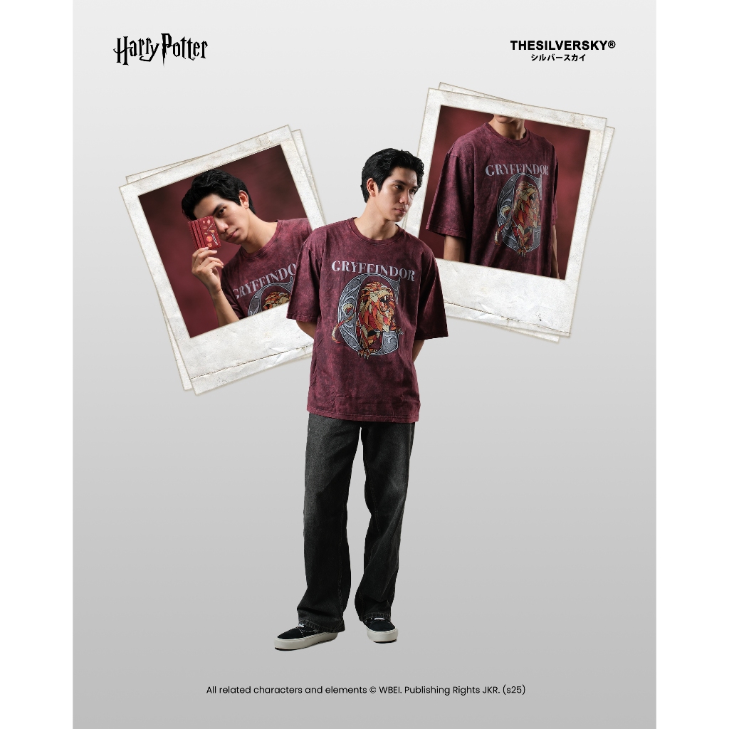 THESILVERSKY GRYFFINDOR MAROON OVERSIZED WASHED T-SHIRT | OFFICIAL HARRY POTTER COLLAB