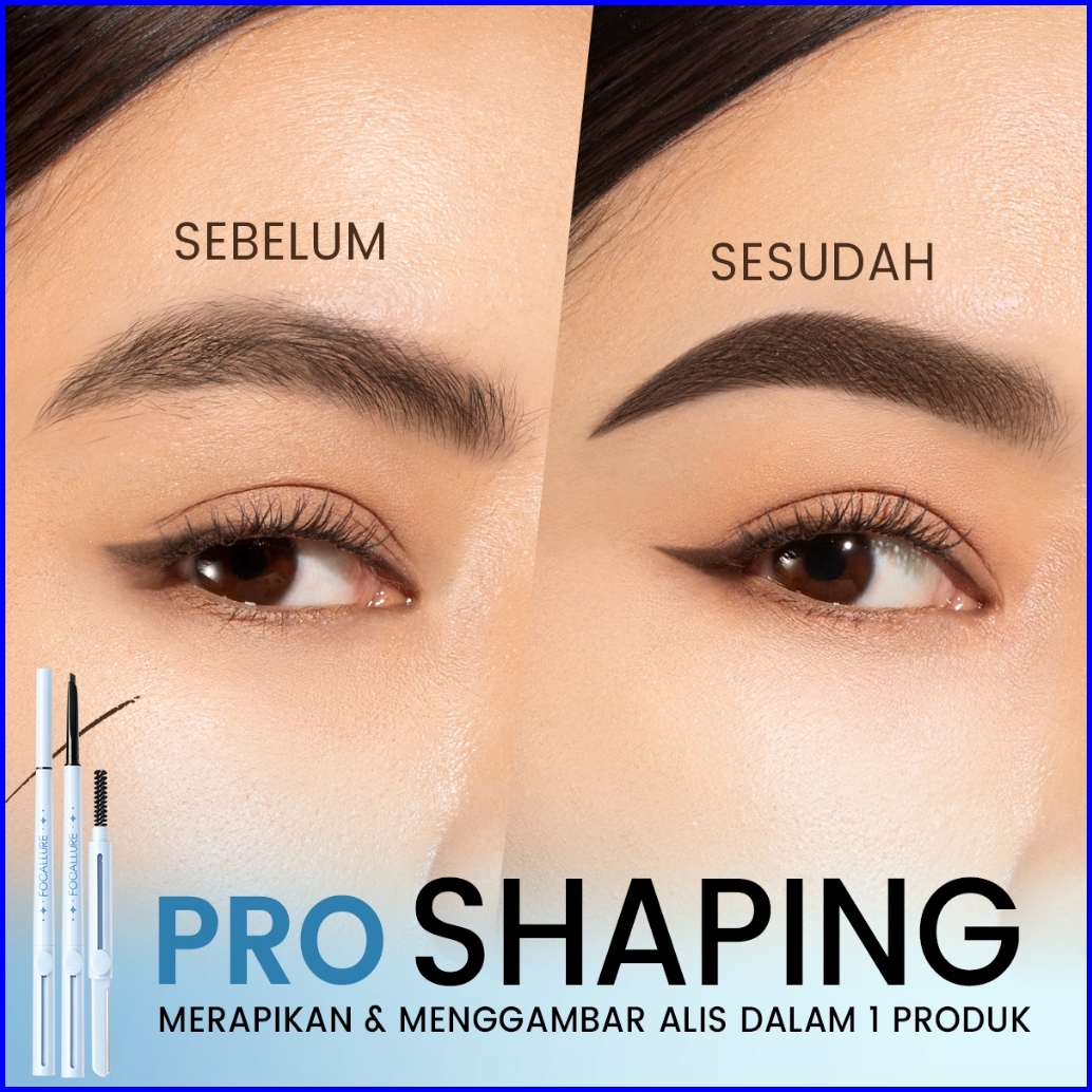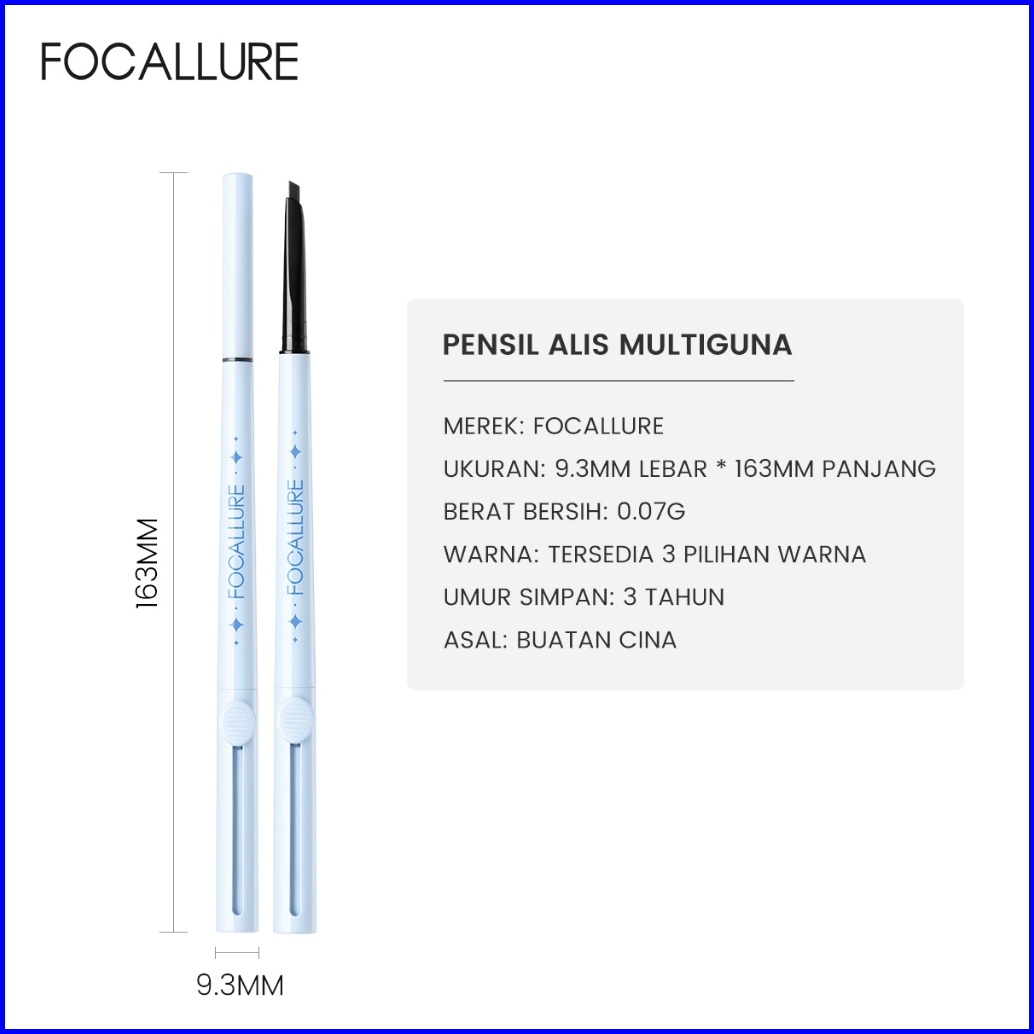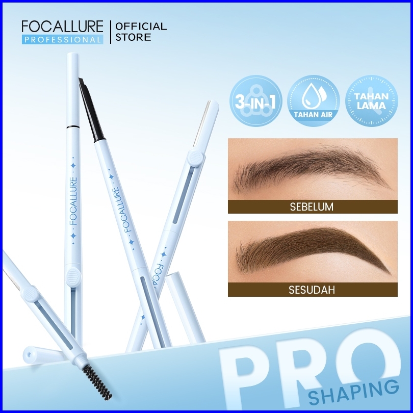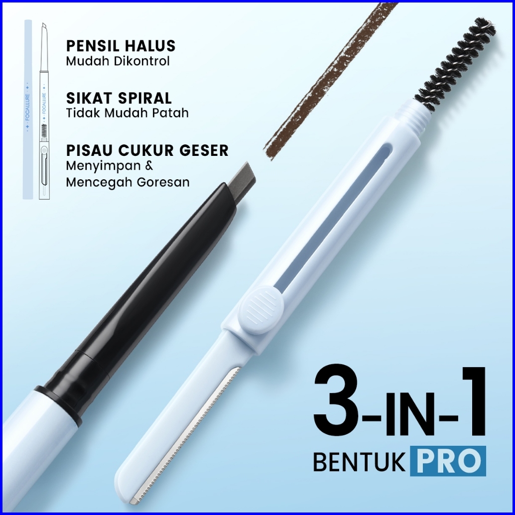 Focallure Pensil Alis 3-in-1 Pro-shaping Kuas Pisau Cukur Bawaan Multi-guna