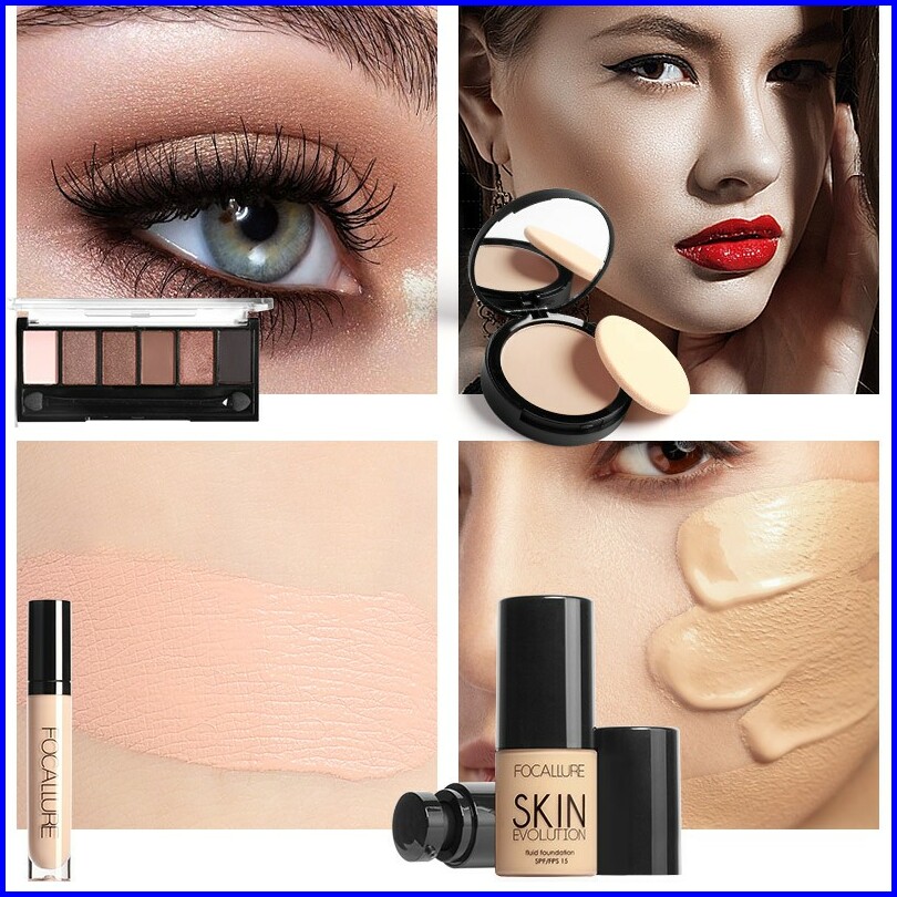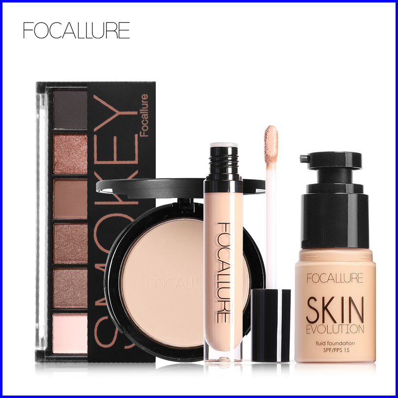 Focallure 4pcs Professional Makeup Set Eyeshadow Palette Foundation Pressed Powder Concealer