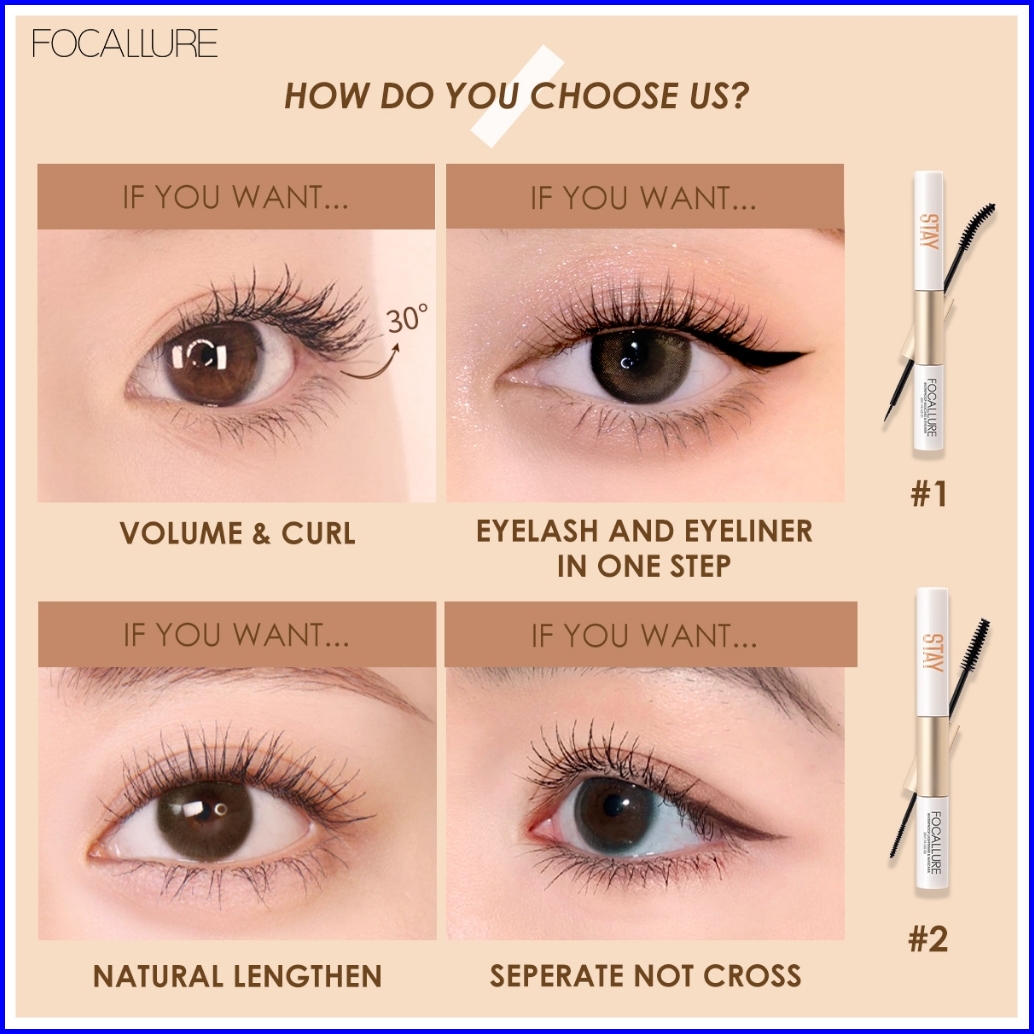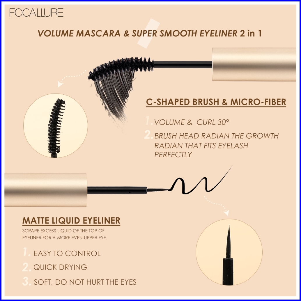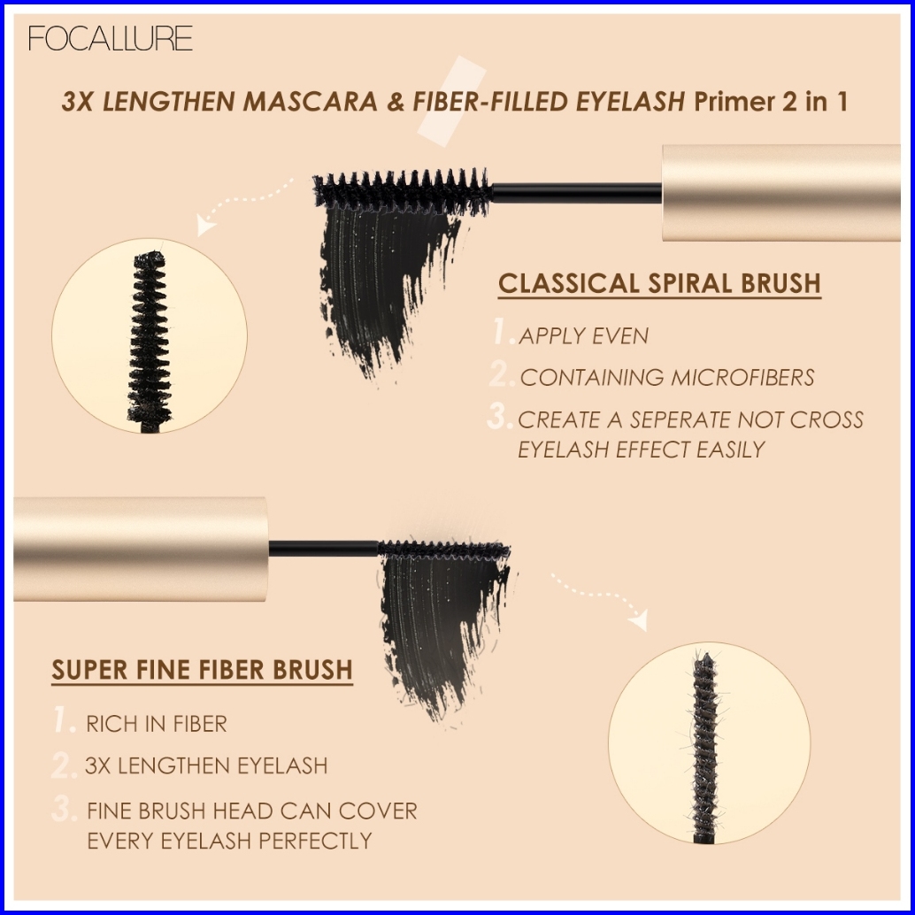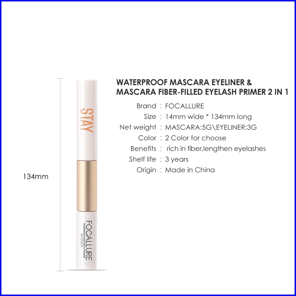 Focallure 2 In 1 Waterproof Maskara Eyeliner Fiber Eyelash Primer