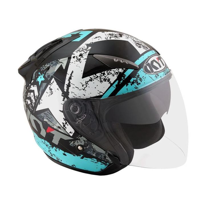 HELM KYT GALAXY FLAT R #5 BLACK AQUA BLUE ORIGINAL - KYT OFFICIAL STORE ID