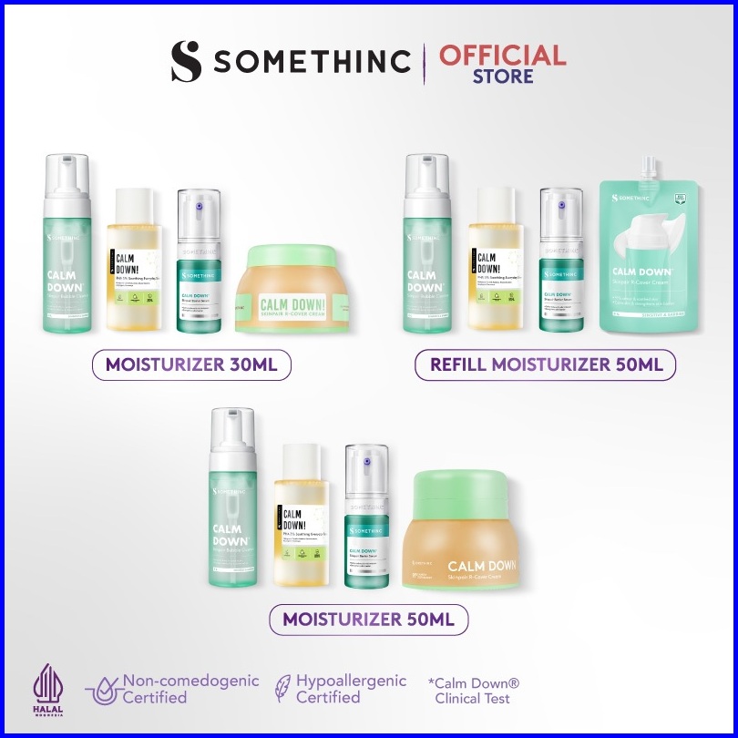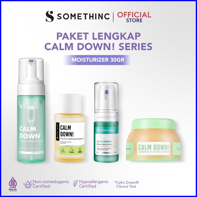 Somethinc 4 Pcs Paket Lengkap Calm Down Series Calm Down Bubble Cleanser Calm Down Toner Calm Down Serum Calm Down Moist