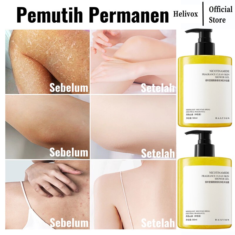 HELIVOX Sabun mandi cair pemutih badan Sabun badan mencerahkan kulit Pemutih badan dan wajah Moisturizer whitening