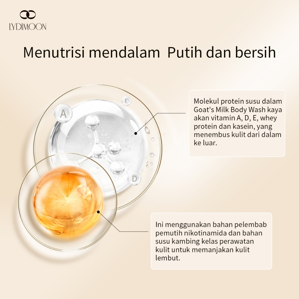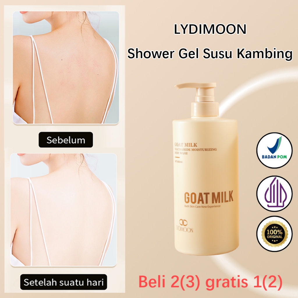 LYDIMOON Shower Gel Susu Kambing | Shower Gel Pemutih | 800ml | Halal Alam | Memutihkan kulit&Lembut dan bersih