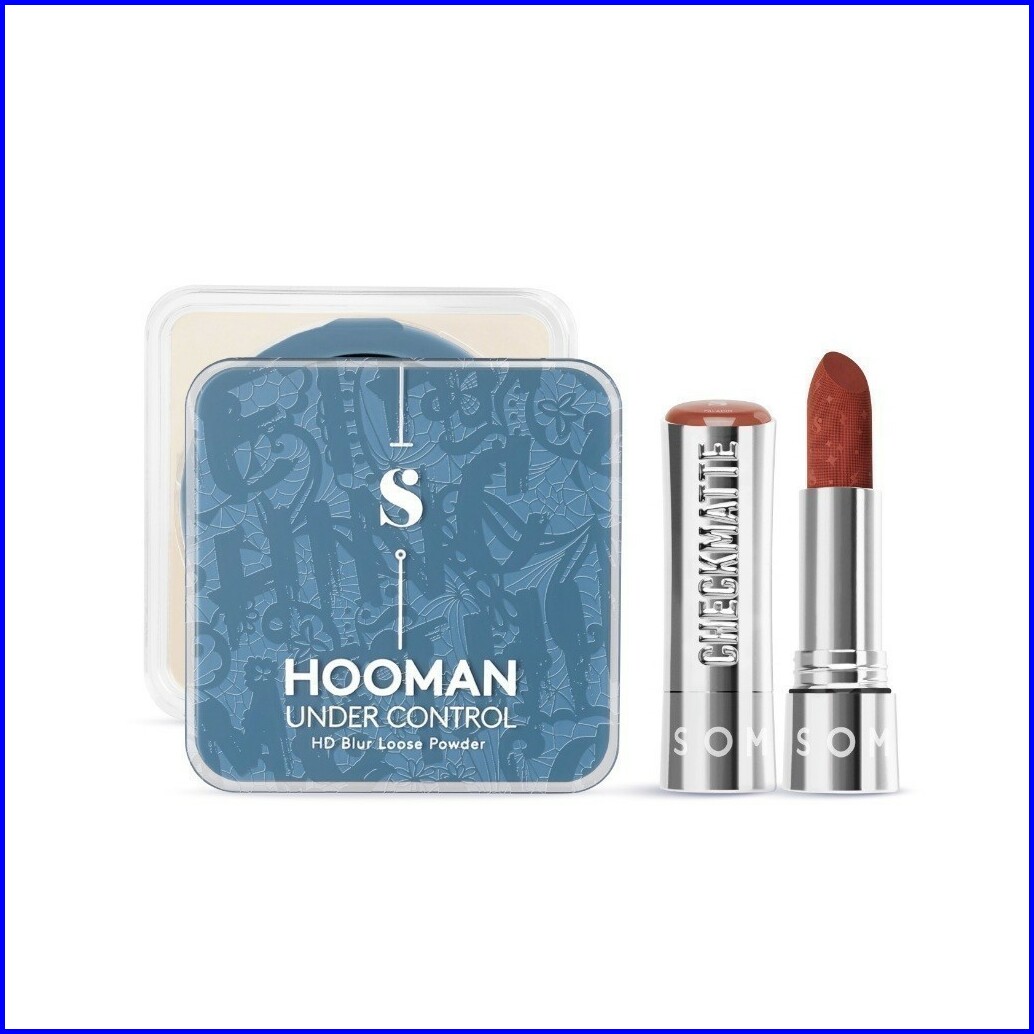 Somethinc 2 Pcs Clean Girl Makeup Starter Kit - Hooman Loose Powder Checkmatte Transferproof Lipstick