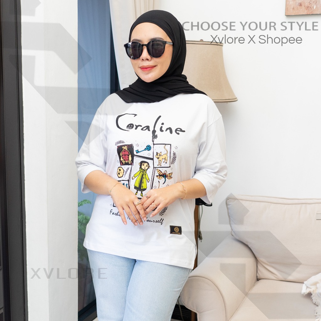 XVLORE | TERBARU KAOS ATASAN BAJU WANITA OVERSIZE MOTIF TERBARU CORALINE KATUN 20S NYAMAN LEMBUT