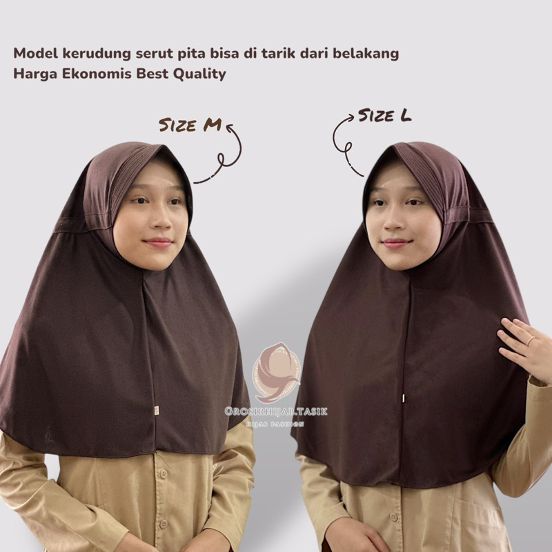 Kerudung Sekolah Ukuran S/M/L/Sma Modelan Rabbani Innova Pita Serut Tutup Anak Sd Smp Sma