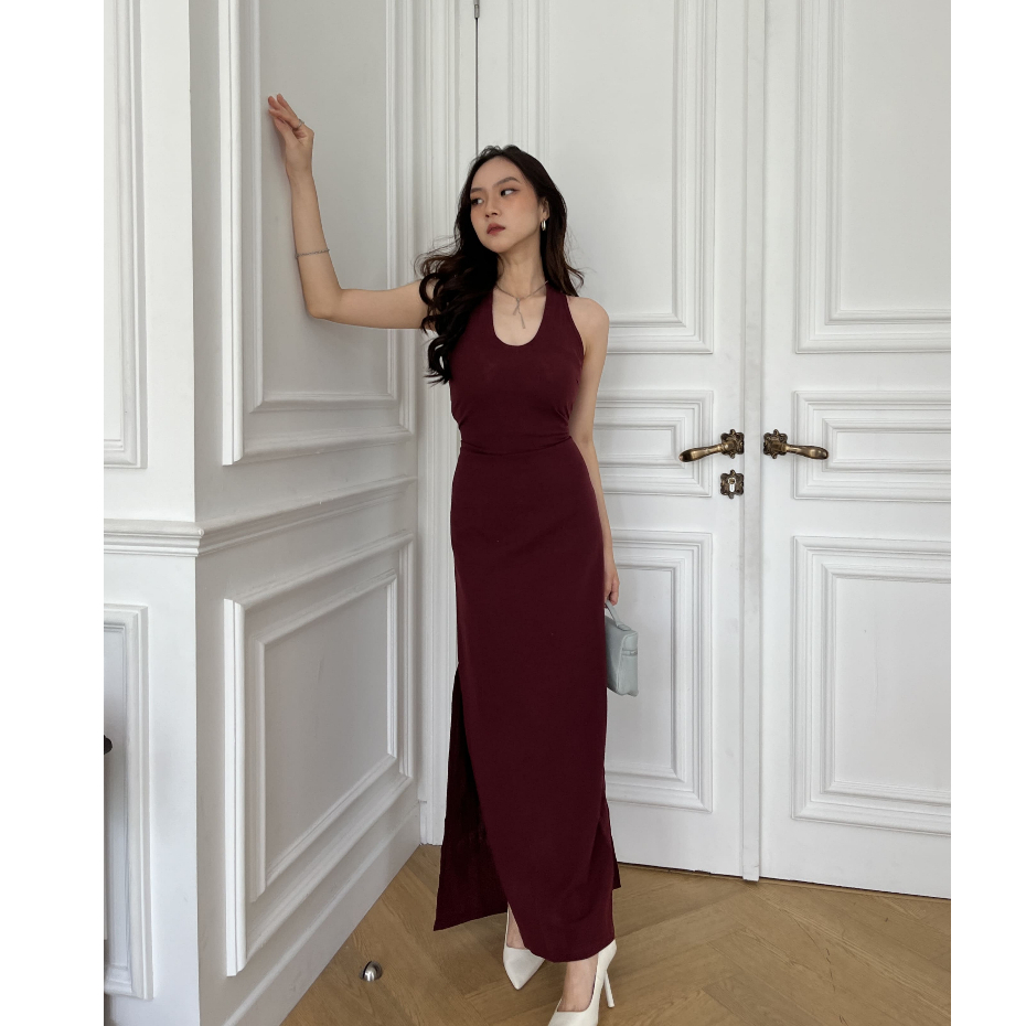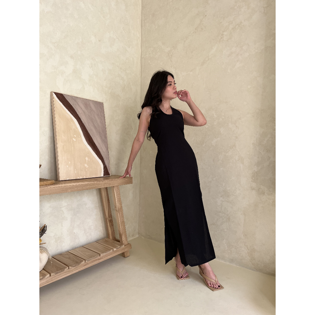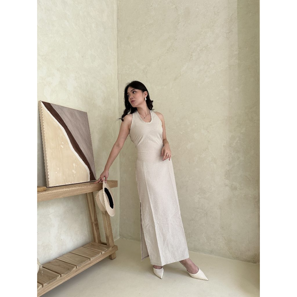 Peach Poppy CHARIN Long Dress - Gaun Pesta Vneck Halter Summer Style Gaun Panjang Tali Punggung