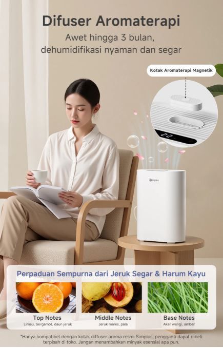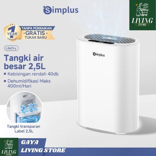 Dehumidifier Simplus Kapasitas 2,5L 380mL/Hari Anti Bising 35dB Untuk Kamar Lemari Kamar Mandi