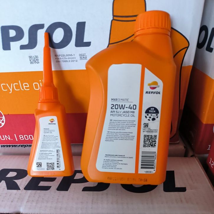 Promo PAKET OLI REPSOL MXR3 MATIC L SAE 20W-40 SJ JASO MB + OLI GARDAN 120ML ORINAL REPSOL New