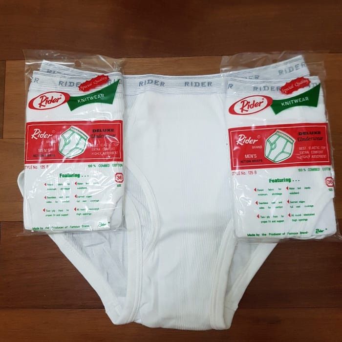 PROMO 3 PCS CD Pria Rider Klasik Putih 125 Dewasa, Celana Dalam Laki-laki Remaja Katun Premium,