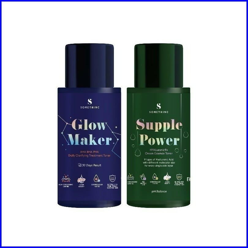 Bundle Hemat Somethinc Trial Kit - Double Toning Kulit Bebas Breakout Kit Glow Maker Aha Bha Pha Clarifying Treatment To