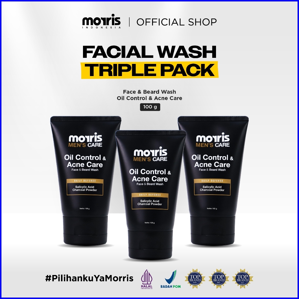 Morris Face Wash Bundle 3 In 1 Morris Men Facial Wash 100gr Sabun Cuci Muka Pria Anti Noda Hitam Bekas Jerawat - Brighte