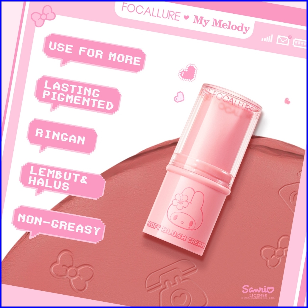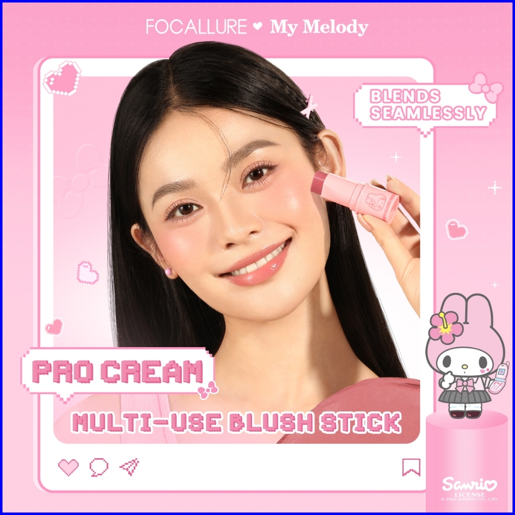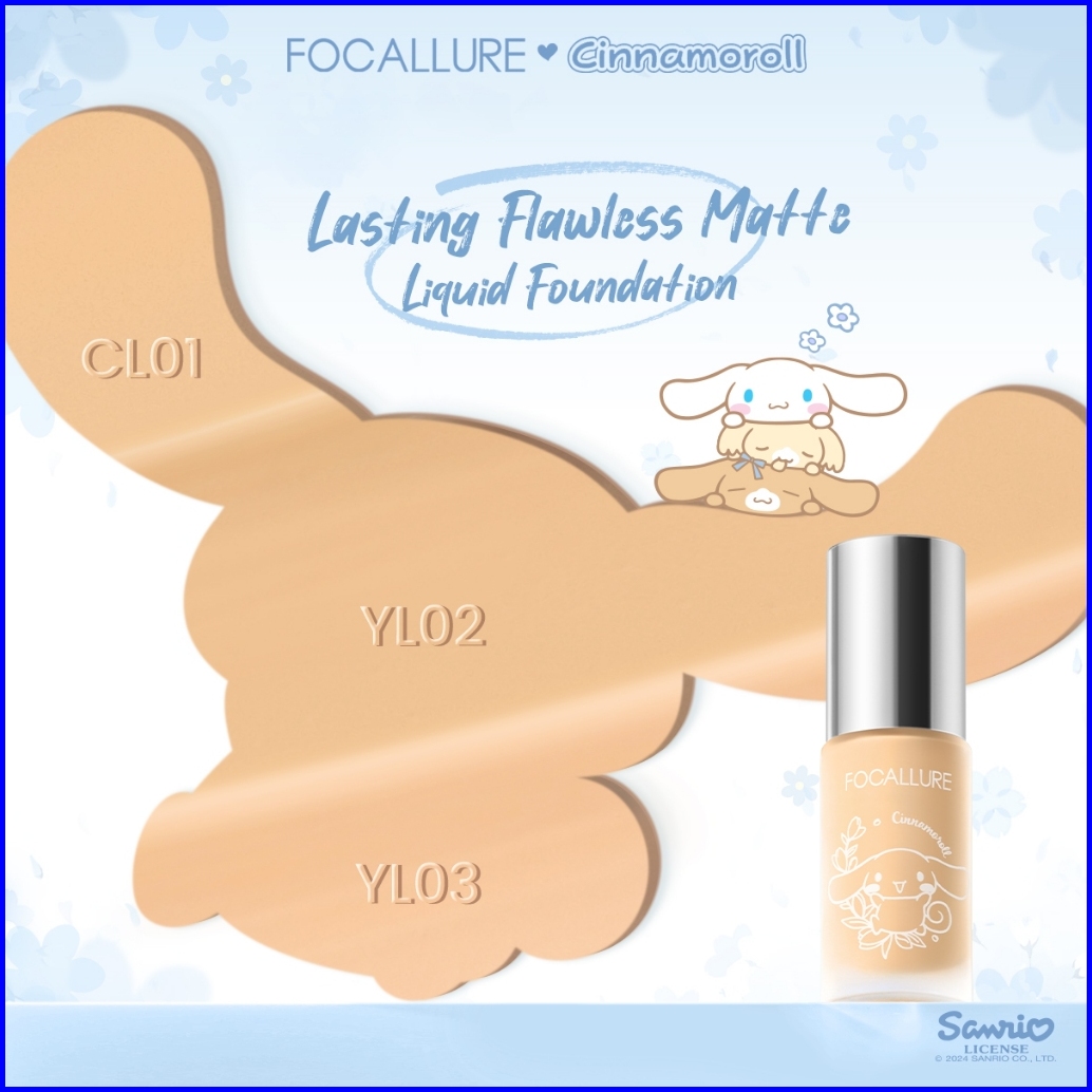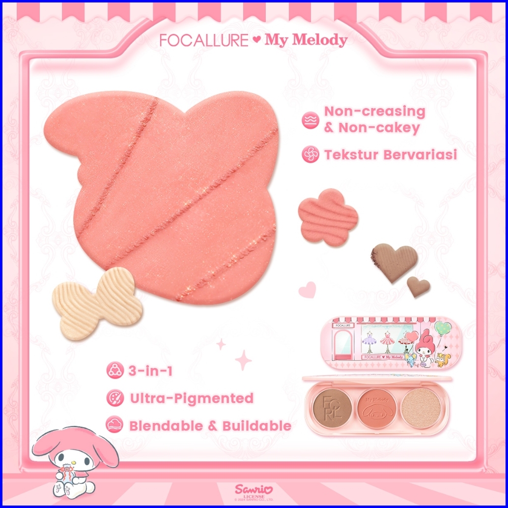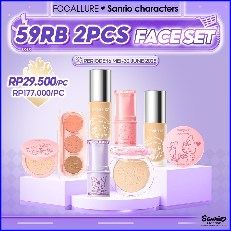 Focallure X Sanrio 2pcs Face Set Foundation Powder 3in1 Palette Blushon Contour