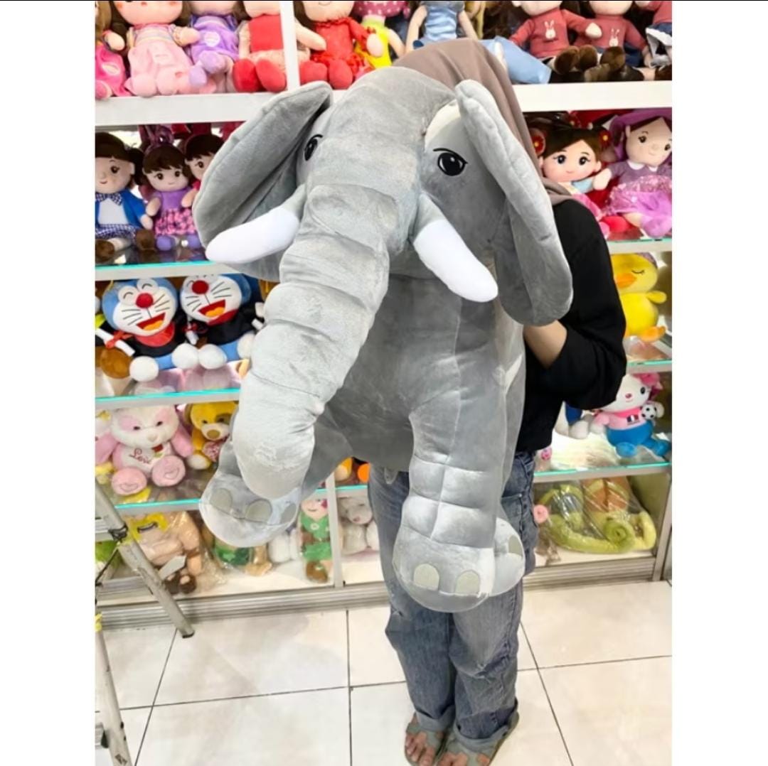 boneka animal binatang gajah duduk besar jumbo mirip asli warna abu grey bagus murah lembut empuk (05021283)
