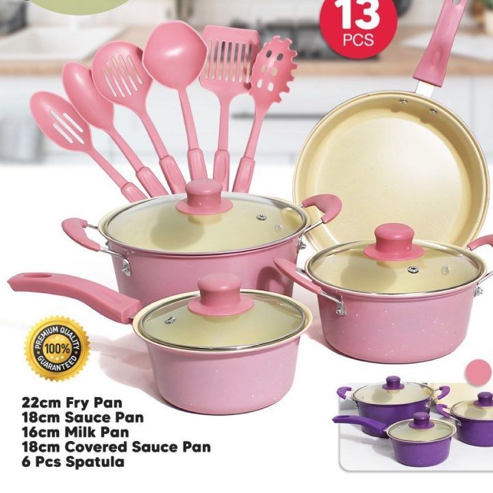 Panci Warna Set Marble Coating Set 13pcs / Cookware Set Marble/ Set Alat Masak
