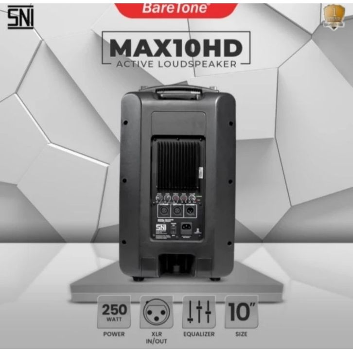 BARETONE SPEAKER AKTIVE MAX10HD/BARETONE MAX10HD 10INCH ORIGINAL(FREE KABEL MIC 10M 1PC & BUSA MIC TEBAL 2PC)