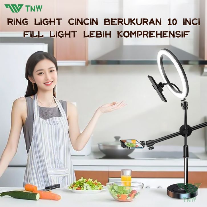 ring light konten jumbo mini TNW Overhead Phone Stand + Led Ring Light Phone Holder Stand Holder Bracket 360° Lampu Fot
