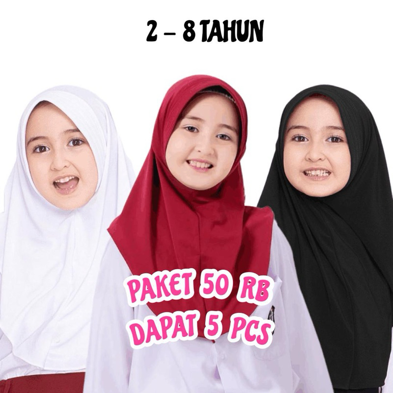 50 Rb Isi 5 Pcs Hijab Bergo Anak Sekolah Tk Sd Hijab Instan Anak Hamidah PolosJersey Tebal Premium