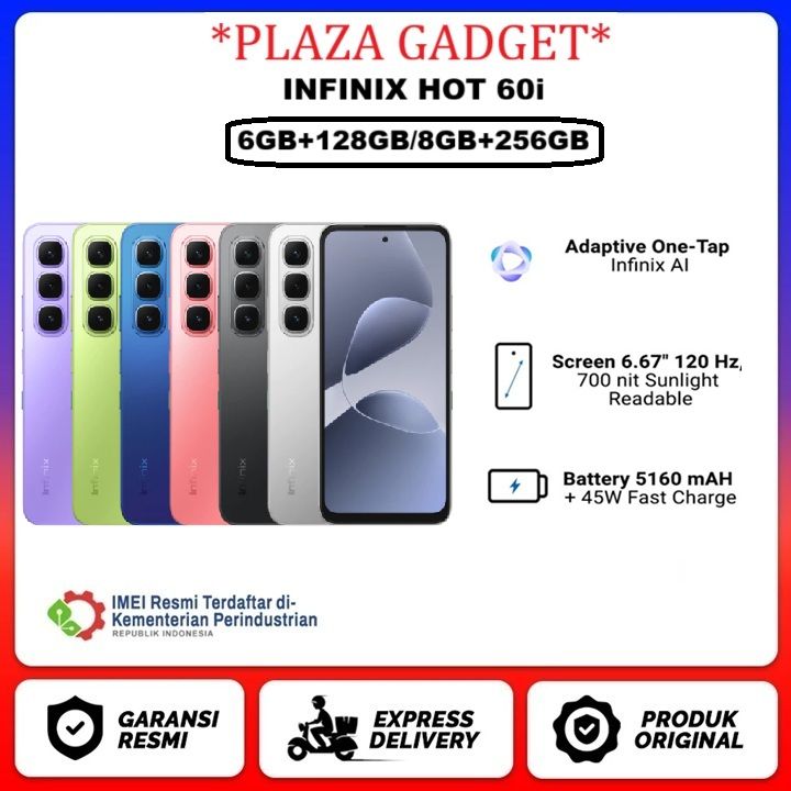 INFINIX HOT 60i 6/128GB+8/256GB Chipset Mediatek Helio G81 Ultimate Battery Type Non-removable Li-po Capacity 5160 Mah