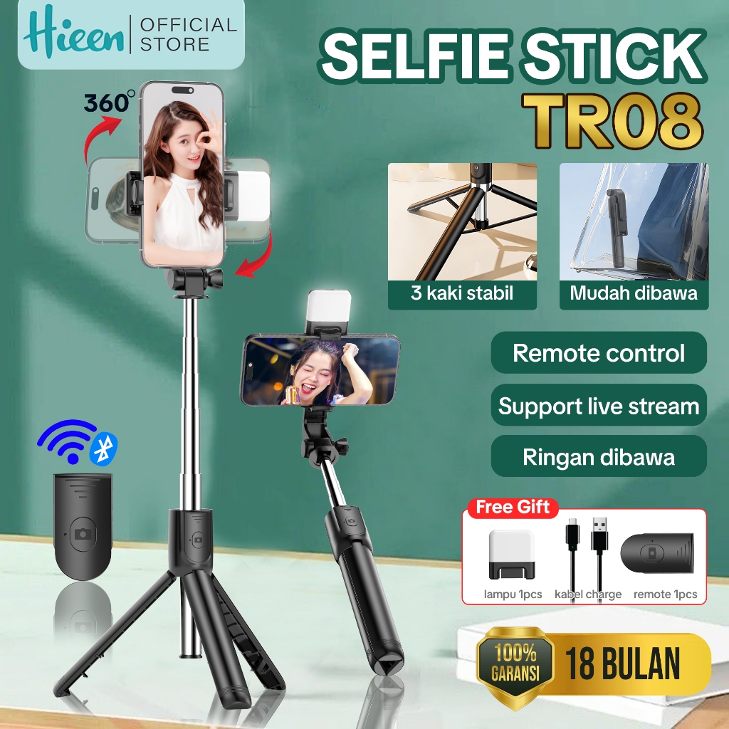 Hieen TR08 Selfie Stick Remote Control Bluetooth Tongkat Selfie Tripod Mini Stainless Steel
