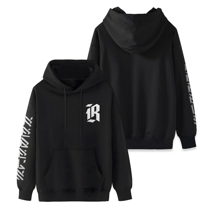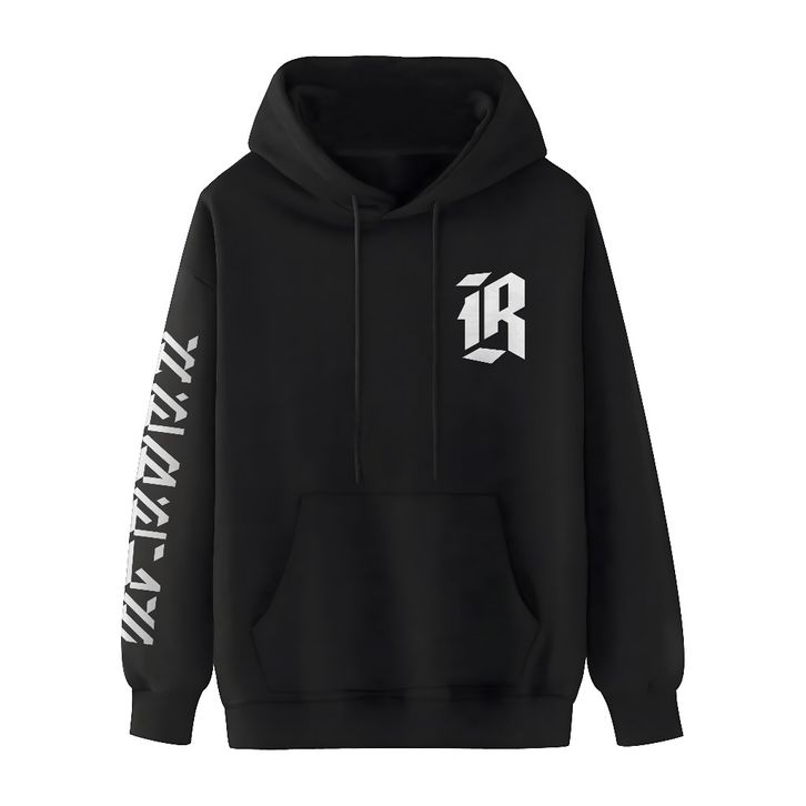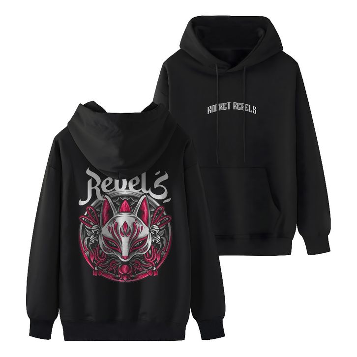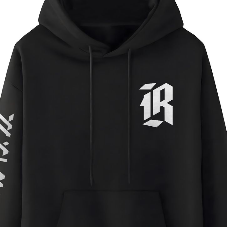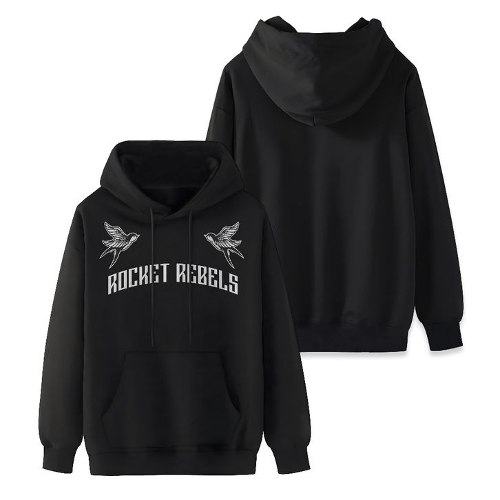 rocketrebels hoodie fleece black r front font design unisex street wear