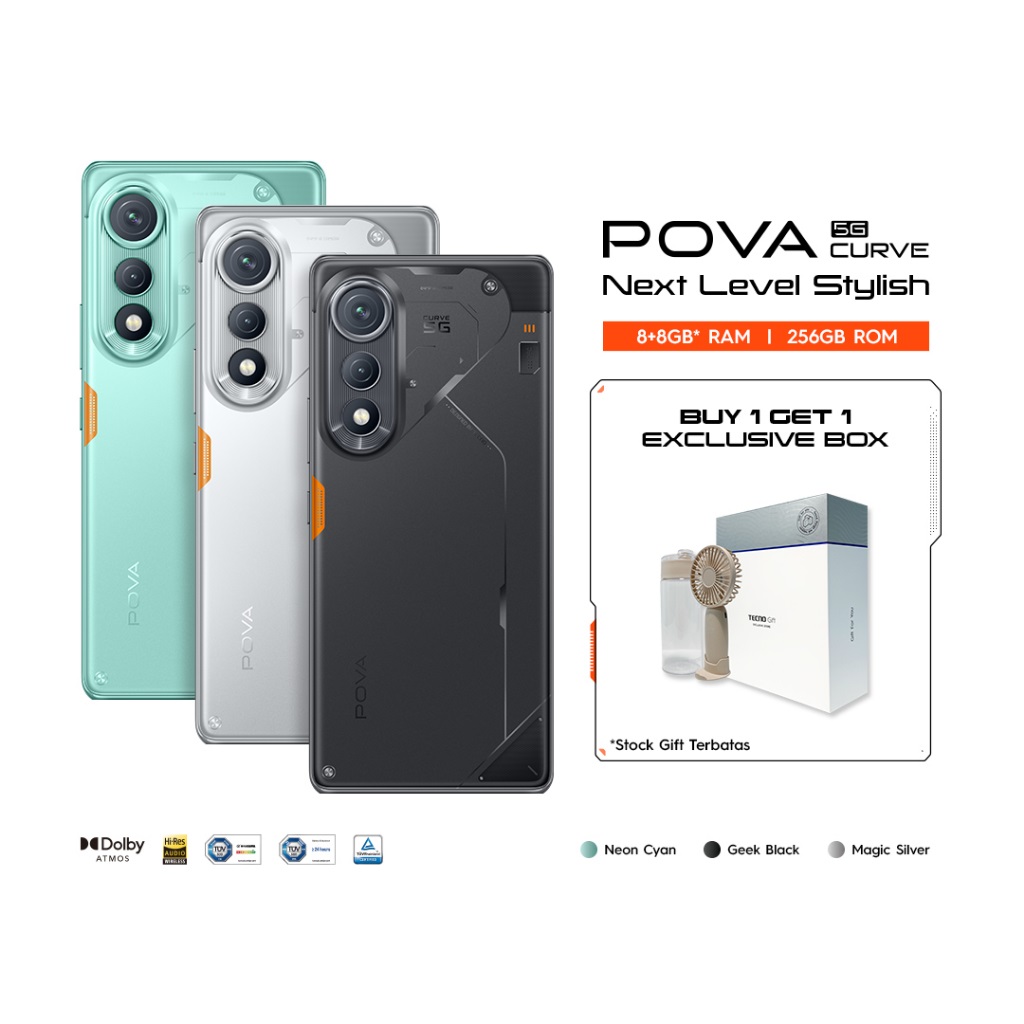 TECNO POVA Curve 5G 8+8GB/256GB, 5500mmAh + Bypass Charging 2.0 , Mediatek D7300 Ultimate 5G, 6,78" Curved AMOLED Displ