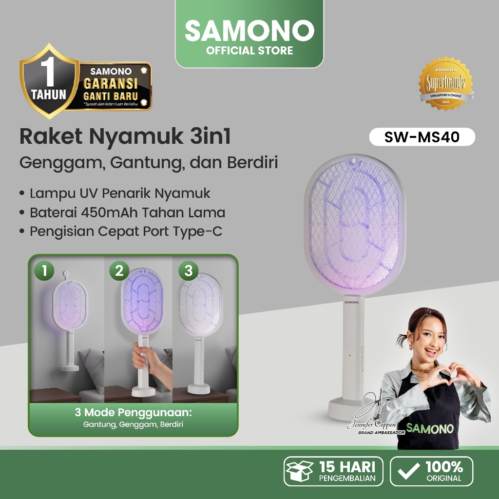 SAMONO Raket Nyamuk 3in1 UV Light 450mAh Tahan 20 Hari Mode Genggam Gantung Berdiri SW-MS40