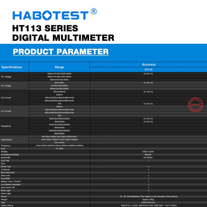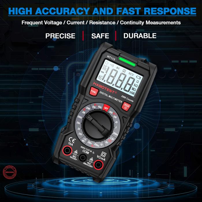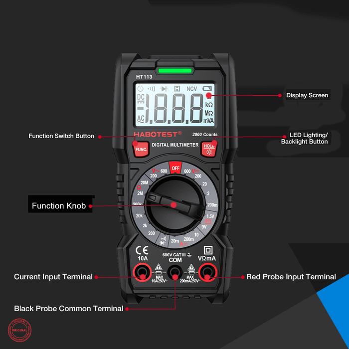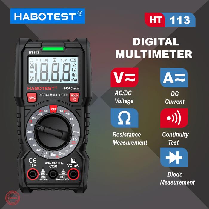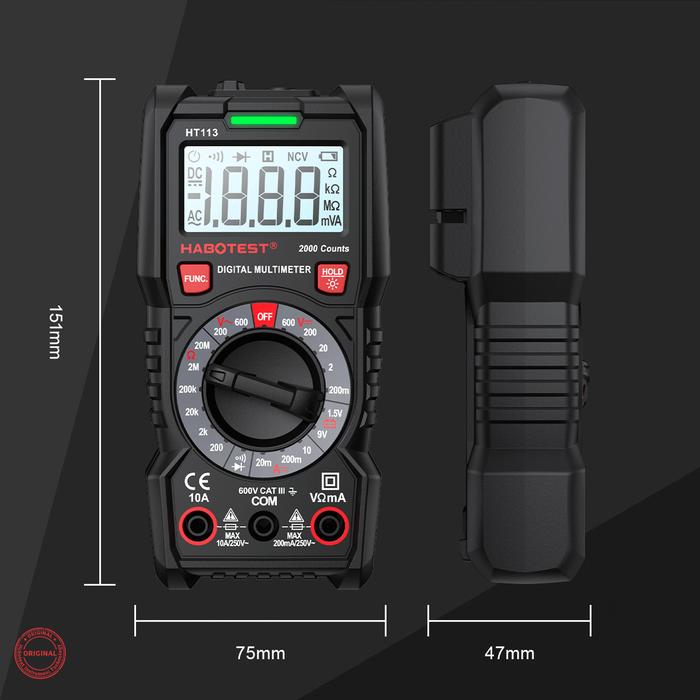 HABOTEST HT113 Multimeter Digital 600V AC/DC Detektor True-RMS Portabel Voltmeter Ammeter Ohm Hz