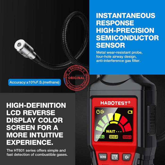 HABOTEST HT601A Plus Detektor Kebocoran Gas Detektor Kebocoran Gas Mudah Terbakar 9999 PPM