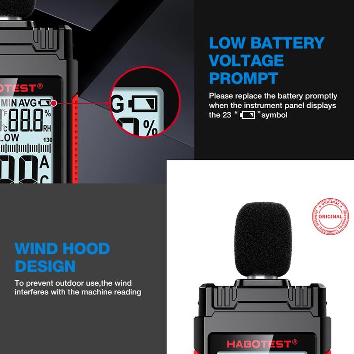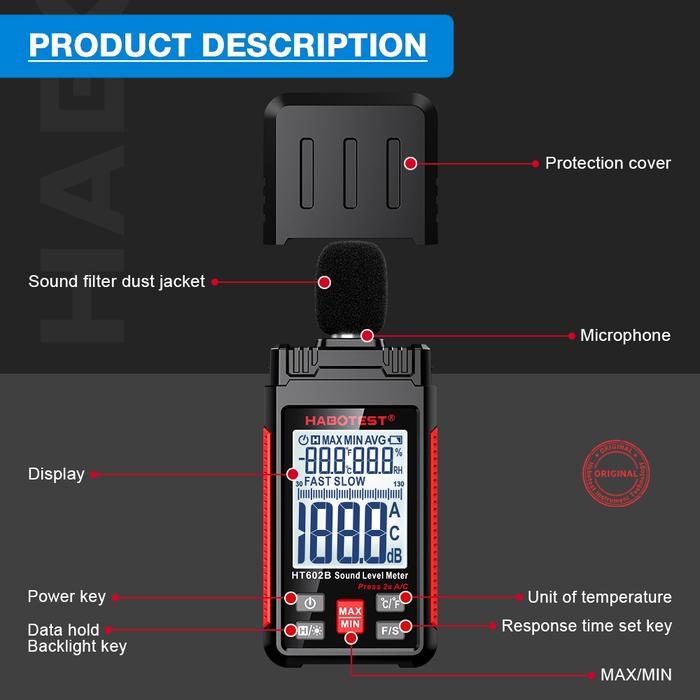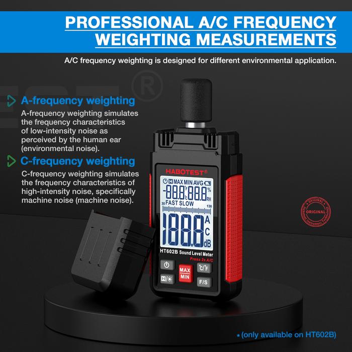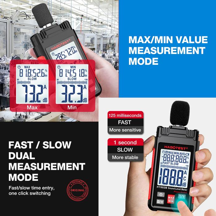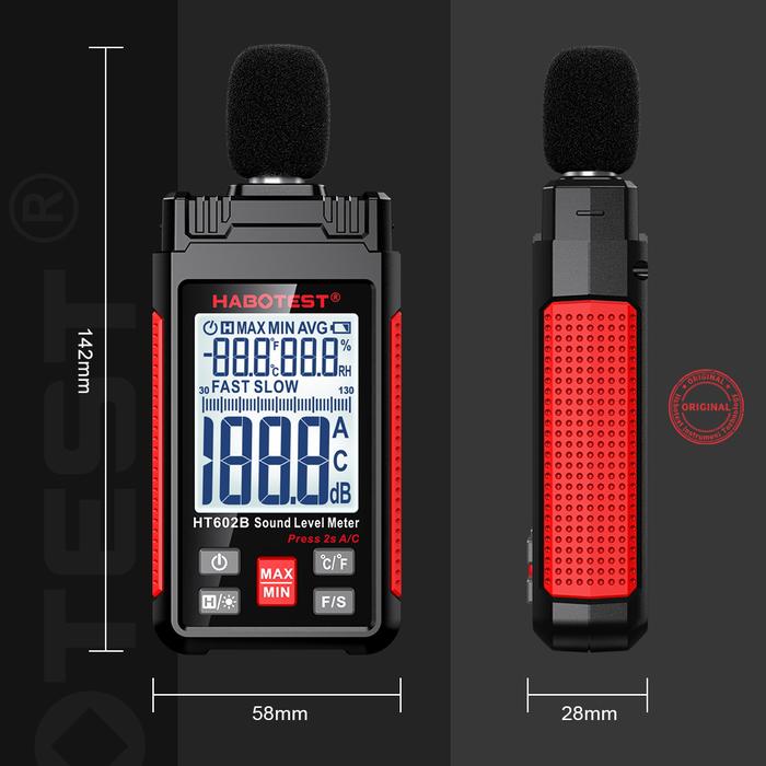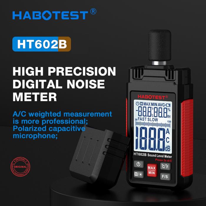 HABOTEST HT602B Meteran Suara 30-130dBA Noisemeter 2.2 In LCD Digital Meteran Pengukuran Kebisingan