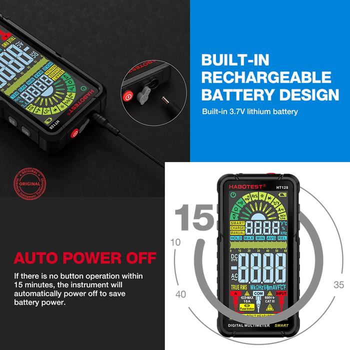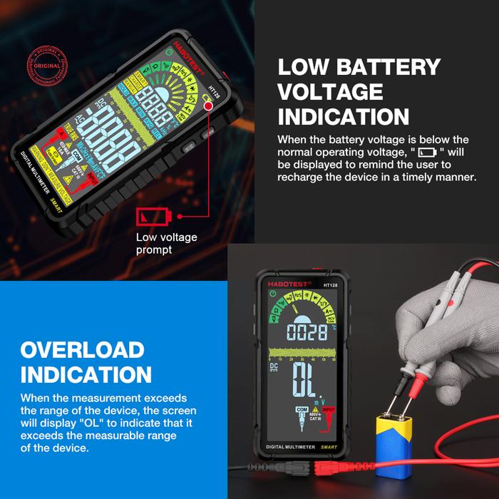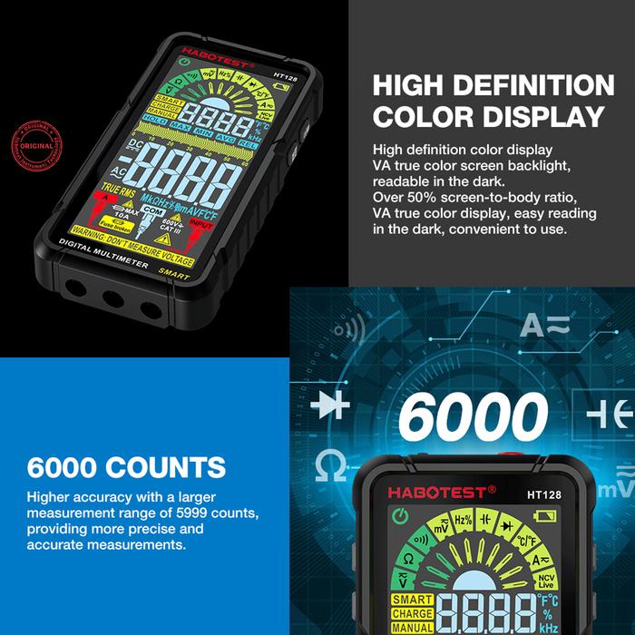 HABOTEST HT128 Multimeter Digital Meteran Voltmeter NCV Tester Lampu Latar LCD