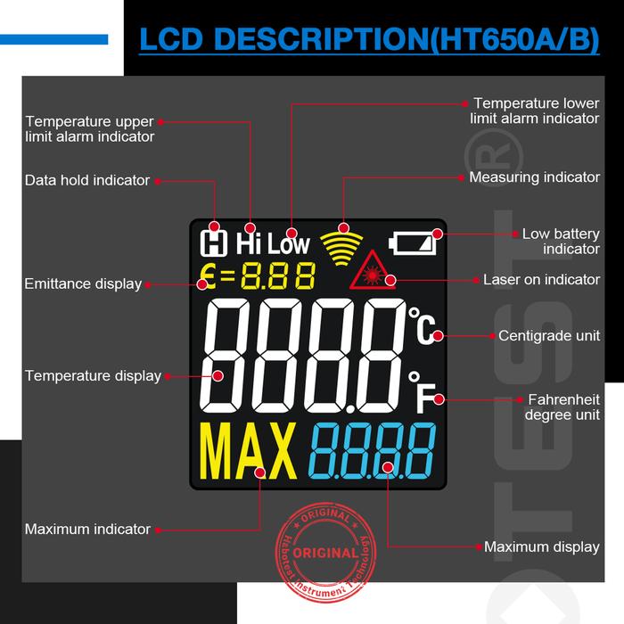 HABOTEST HT650 B Termometer Inframerah Laser Pengukur Suhu Pirometer Imager Higrometer IR Termometro