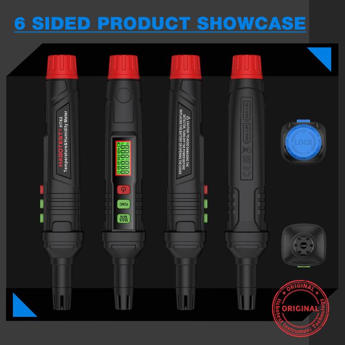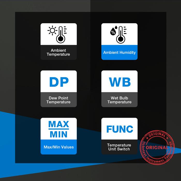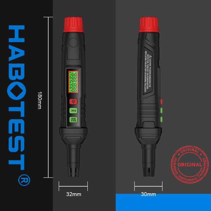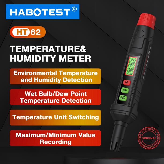 HABOTEST HT62 Termometer & Higrometer Pena Suhu dan Kelembapan dengan Titik Embun dan Bola Basah
