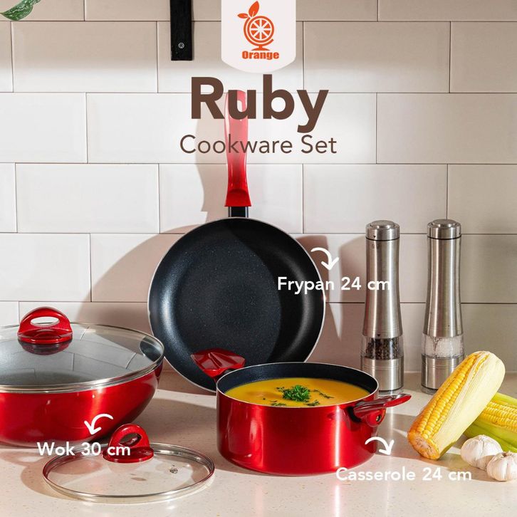 Hi Mart Ruby Set Cookware 4in1 Panci Set Stainless Panci Susu Tutup Kaca + Teflon Penggorengan Fry Pan Multifungsi