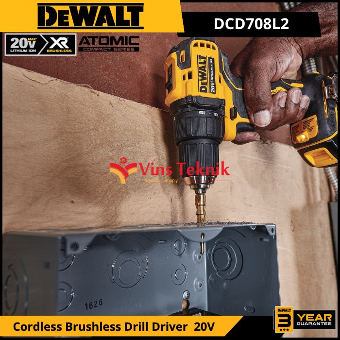 DEWALT DCD708L2 Mesin Bor Baterai Cordless Brushless Drill Driver 13MM 20V DCD708