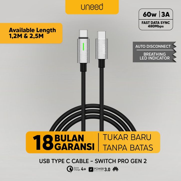 kabel data UNEED Kabel Data Auto Disconnect Type C to Type C QC PD 60W - UCB45CC