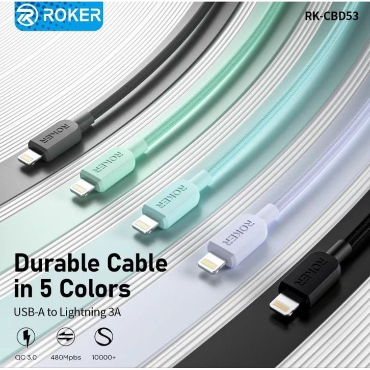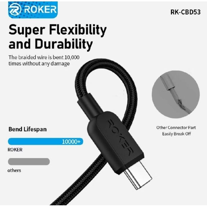 kabel data 1Box 25Pcs Kabel Data ORIGINAL ROKER BOXY RK-CBD53 USB Micro 3A / Lightning IOS 3A / Type-C 5A Fast Chargin