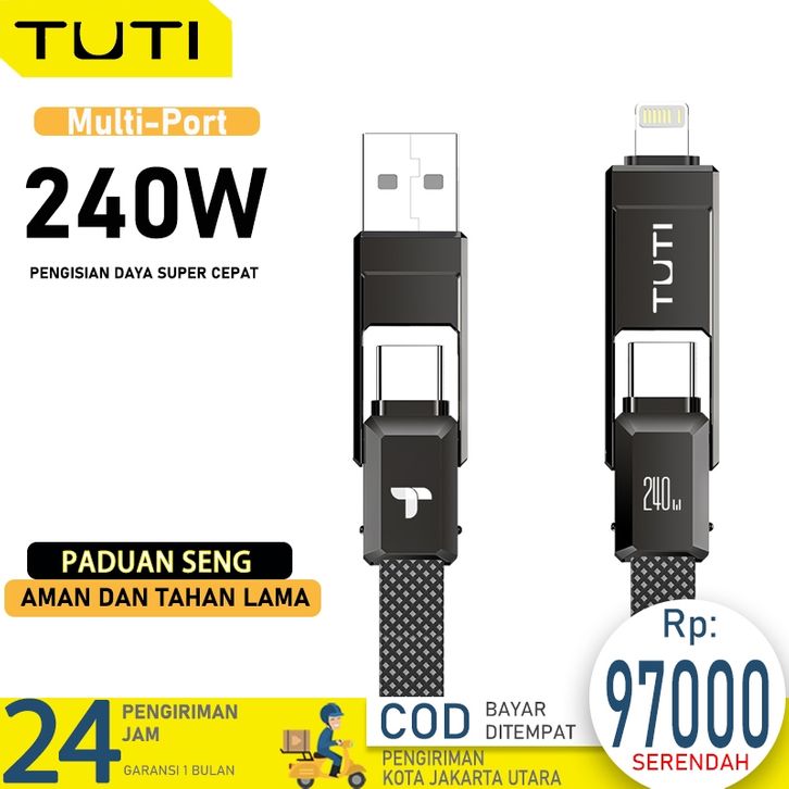 kabel data TUTI Kabel Data 4 in 1 240W 5A 1.2M USB ToType-C/Type-C To iOS Multi-Charge Zinc Alloy Data Cable