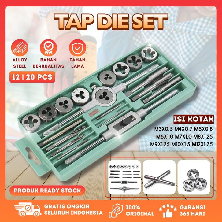 KODAI Tap Die Set 12/20Pcs Alat Senai Tap Ulir Drat Mur Baut Manual Metrik Pembesar lubbang Ulir
