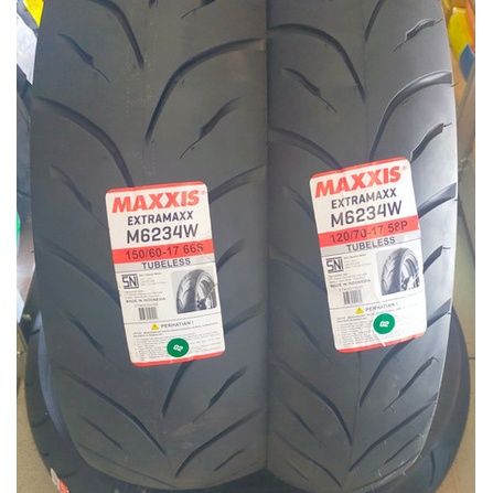 ( RING 17 ) Paket Ban Maxxis Extramaxx UK 120 / 70 -17 dan 150 / 60 -17 TUBELESS M6234W FREE PENTIL