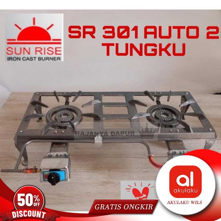 Kompor gas bodi cor sunrise sun rise tipe 301 auto 2 tungku mata SNI - kompor sunrise - 301 auto 2 mata - 301 a 2 tk - k