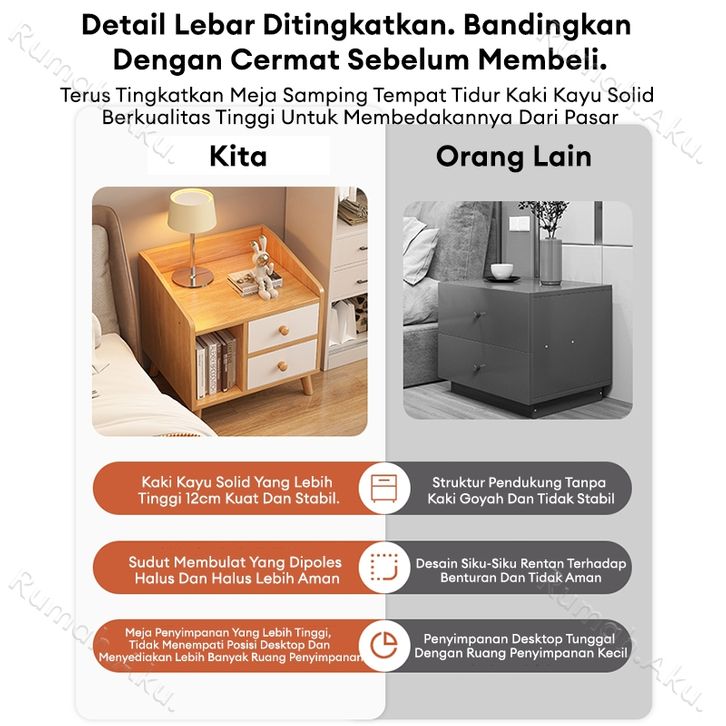 Lemari Nakas Kayu Putih Samping Bedside Table