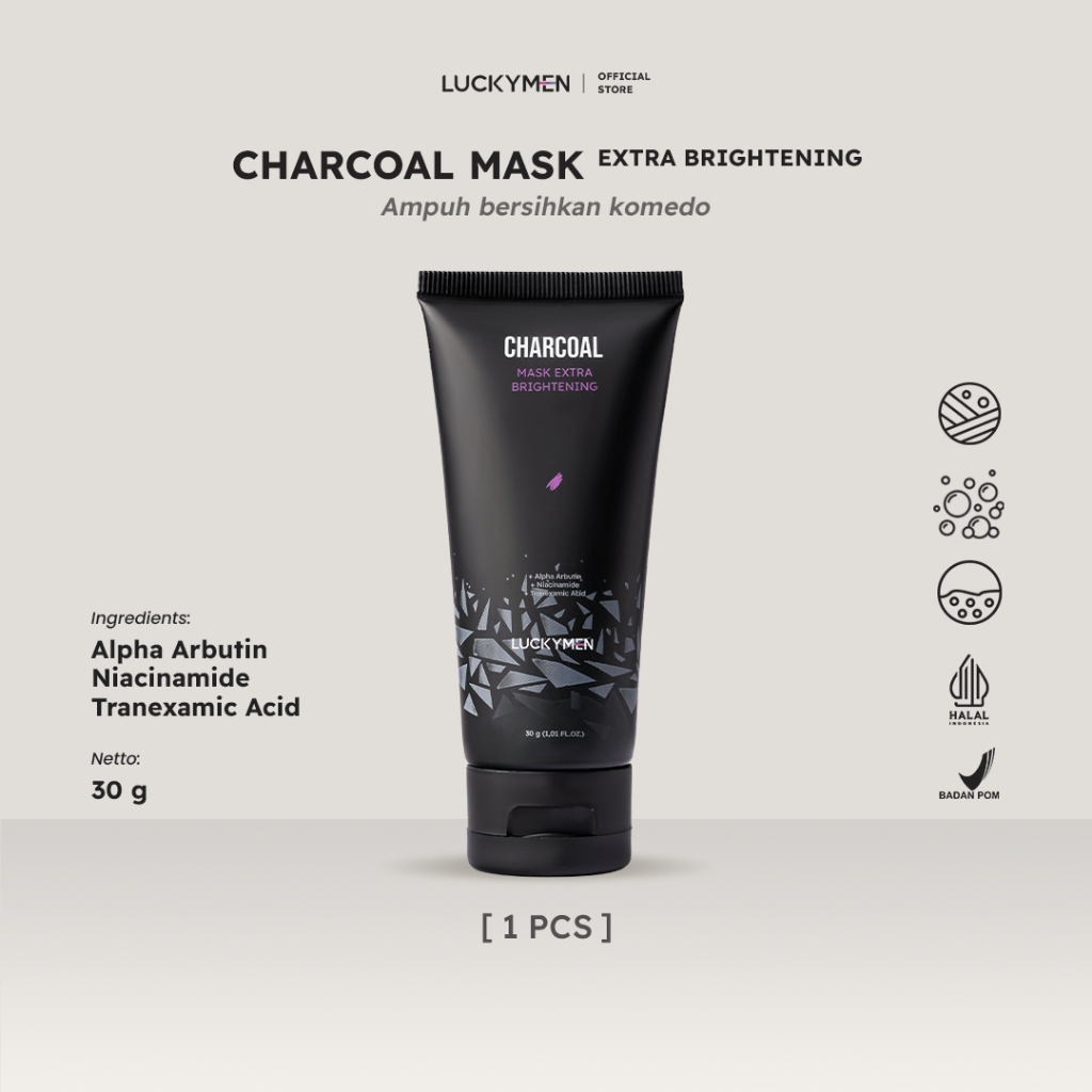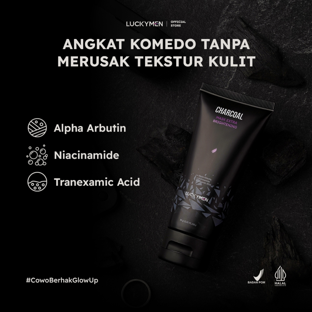 [UPGRADE FORMULA] LUCKYMEN Charcoal mask extra brightening - Ampuh Bersihkan Komedo